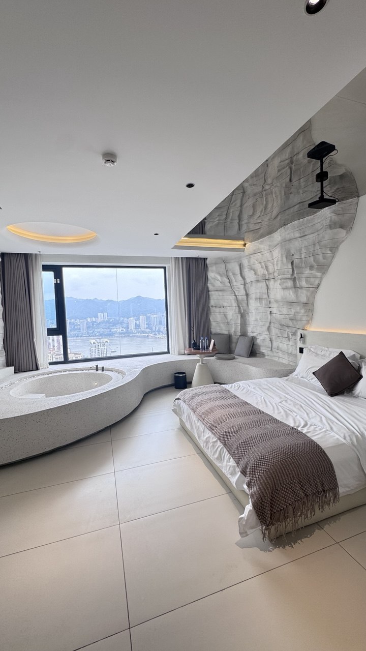 After lunch, we walked around the area and discovered a small alley filled with shops and snacks overlooking the Yangtze river. After window shopping for a bit, we finally checked in to YOLO Skyline Riverview Hotel . Ngl the entrance of the hotel was a shady building with very little lighting. The reception was at the fourth floor and our rooms were located at the 41st floor. I believe that’s the second highest floor in the building; the building had 42 floors!! Despite the shady looking exterior of the building, I was pretty impressed with the rooms here. The room room was cave themed and it had a mini private pool within it. It’s floor to ceiling windows overlooked the Yangtze river and it also comes with a projector screen which you can play shows, sing karaoke or play songs. It’s definitely one of the better hotels I’ve been to.