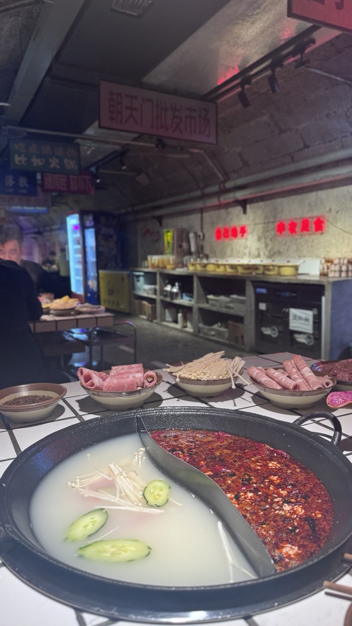 So the thing about getting to Chongqing from Singapore was that we had to transit in Shanghai Pudong airport to Shanghai Hongqiao airport (4hrs transit) before finally arriving in Chongqing Jiangbei airport. It takes about 5 houts to fly from SG to Shanghai Pudong, then 4 hours transitting to the other aiport in Shangha, before another 3 hour flight to Chongqing. It’s almost 12 hours of travelling so it’s pretty intense but the timing was good so we decided to go with it. We managed to land in Chongqing at 11am. We called a didi (the term they used for cabs in China and it is located within the Alipay app) and managed to reached our hotel within 30 mins from the airport. Arrived a bit too early for check-in so we left our luggage at the reception and grabbed hotpot at a nearby restaurant since we were starving. We were served with a Yin Yang hot pot which had Mala and Mushroom soup and the Mala looked spicy and oily af LOL. Was not very impressed by their ingredients because they were mostly frozen meats.