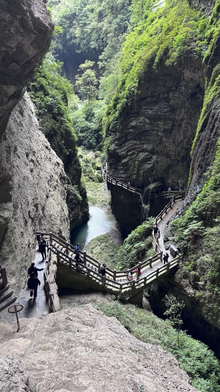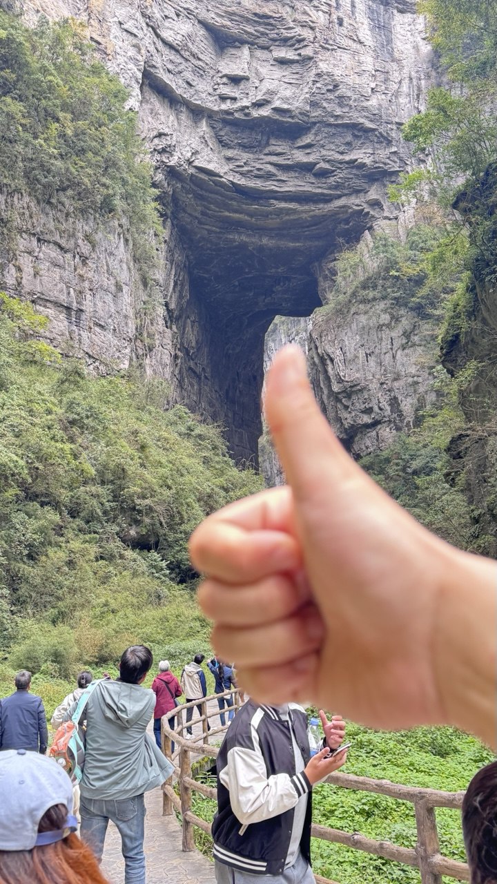 Woke up at 6am to meet our guide at 645am at our hotel lobby for our full day hike at Wulong Karst. We boarded the bus and it brought us to the interim meeting place before we onboarded another bus which brought us to Wulong Karst. The trip there took 3 hours from the city centre and there was a couple of pit stops during the trip there. We watched a 5min VR experience in one of the pit stops which kind of gave us a preview of what Wulong Karst looks like, quite interesting ngl it made me wann return to Chongqing to see the “flying kiss” statues. We had a simple lunch which was included in the package before finally arriving at Wulong Karst. We bought the tickets to go onto the observatory deck which allowed us to stand on the glass floor an look down into the view below the deck. I think some people who have a fear of heights might not be able to handle the view because it’s really high up from the ground.