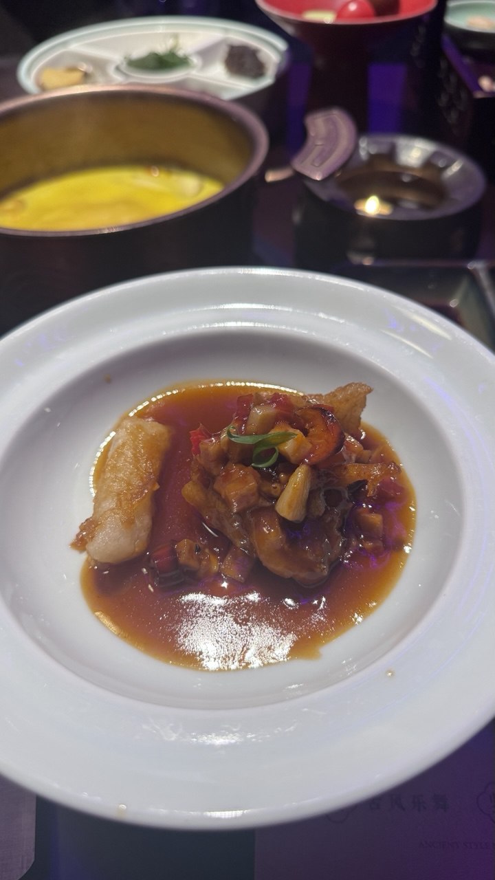 Anyhoo, we went to shop at popmart in Guan Yin Qiao and find the legendary screen that shows “我 在 重庆” for 3 second wtf?? No wonder the whole street was PACKED with people, everyone be trying to catch that slide which only appears for 3 seconds. Talk about genius marketing. We had some time to kill so we went to Chagee before finally taking a cab to the Chongqing imperial feast. The place was slightly difficult to find but we managed to find it and dress up in the costumes provided before they ushered us to an area to play some traditional games before the dinner. The games include 五子棋, calligraphy challenge, mini soccer, dance challenge, dice guessing game and also arrow throwing game. It was so cute because they gave us taels to use as “payment” for a chance to play the game. If we win, we get to collect more taels HAHAHA We had so much fun playing the games, my personal favorite was definitely the 五子棋 cause it’s a strategy game. Ngl I lost the first round but in the second round I won mainly cause the guy gave chance to me. In fact, after learning about this game, I went to buy it home to play hehe